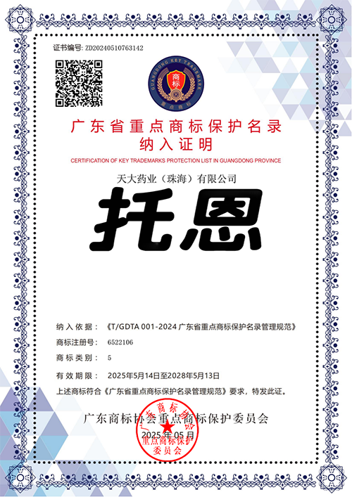 In April, Tianda Pharmaceuticals’ pediatric brand “Tuoen®” was named in the 2024 Guangdong Province Key Trademark Protection List.